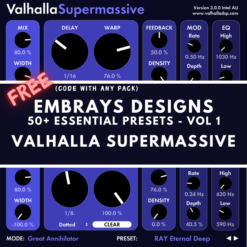 Embrays Designs - 50+ Presets - Valhalla Supermassive - FREE (Use Code Sent via Email)